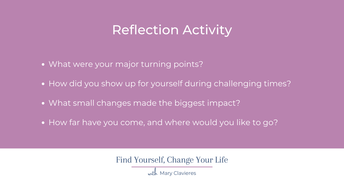 Take a look at how far you've come. This is not meant to be an exercise that's filled with regret. It's really about what are some of the low lights and the highlights, along with how you persevered and what you did to make changes, and how you showed up for yourself in some way. I personally don't think we ever give ourselves enough credit for showing up and it's important to give yourself credit for that.